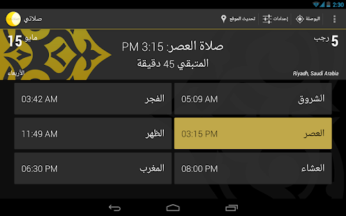 - يحتوي البرنامج على ودجت لعرض أوقات صلوات اليوم.